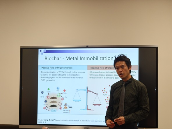 会议伊始,孙宇晴助理教授介绍了曾超华教授的工作经历,以及其课题组在生物炭可持续农业领域的系列成果。曾超华教授主要研究生物质热解与生物炭功能化利用、重金属迁移转化机理和环境毒理、焚烧灰渣无害化利用、低碳高效生物精炼、二氧化碳封存与利用等;于2020-2022连续三年获评“全球高被引学者”,实时h-index指数为111。普教授承担Science of the Total Environment,Critical Reviews in Environmental Science and Technology,Journal of Environmental Management等高水平学术期刊副主编职务至今,被授予Publons全球顶级编辑;在Nature Reviews Earth & Environment,Advanced Functional Materials,Environmental Science and Technology等期刊发表学术论文百余篇;担任亚太生物炭大会等4个国际会议主席及6个国际会议共同主席,获得国际生物过程协会青年科学家奖、第45届日内瓦国际发明展金奖等国际性奖项。