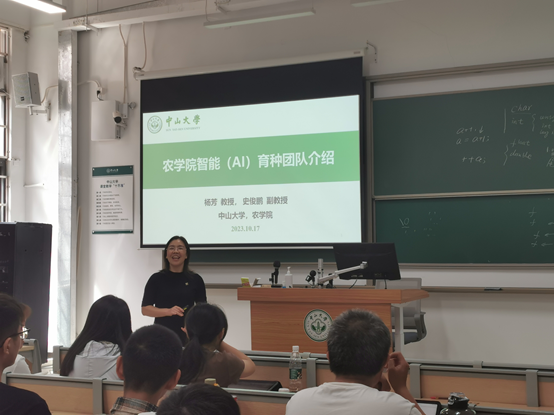 随后,AI育种团队的杨芳老师为同学们介绍智能育种教研室的基本情况,重点就研究领域与研究内容、本科生与研究生培养情况两部分进行了讲解。杨老师从作物育种研究的重要性与保障我国粮食安全需要出发,让同学们更深入地了解了该团队工作的重要性。围绕作物遗传学、作物育种学的知识,杨老师展开说明了作物育种技术瓶颈和未来方向,我国农业的现状、短板,传统农业向现代化农业转型对人才的需求。