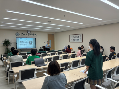 随后,高微老师分别从重庆大学所处地区优势、高校建设情况、辅导员队伍建设现状、思政队伍建设成就,以及招聘简介五个方面为同学们进行介绍。高书记表示,目前重庆大学辅导员岗位缺口较大,人才需求旺盛,且重庆大学辅导员各方面待遇优厚,非常期待中山大学各位优秀毕业生的加入,共同投身于学生管理工作,助力大学生高素质人才发展新篇章。