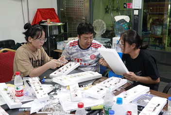 植物学专题结束当天,在指导老师和研究生助教的带领下,同学们立刻转入了昆虫学专题实习课程。同学们白天在野外采集昆虫,晚上在居住地附近对具有趋光性的夜行性昆虫进行灯光诱捕。同学们通过针插、展翅等方法对采集到的昆虫进行标本制作,并运用专业的工具书对它们进行鉴定。