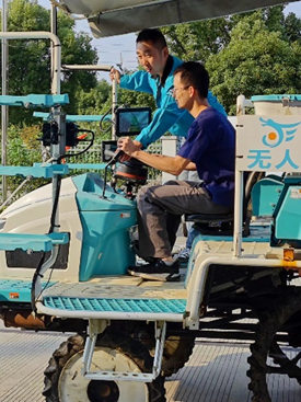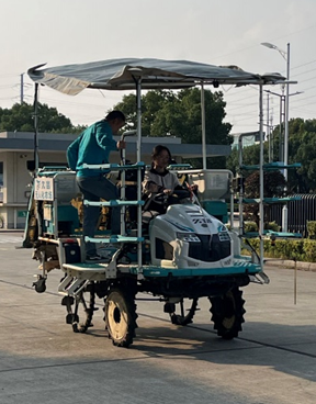 随后,同学们来到了苏州久富农业机械有限公司。久富农机作为高品质水田农机行业领军的高新技术企业,实现了农业生产全流程的数字化、精准化、智能化和无人化。负责人着重介绍了配有北斗导航系统的无人插秧机,该机器不仅能够自动规划插秧路径、调头和转弯,而且配有侧深施肥装置,大大提高了效率和化肥利用率。同学们纷纷感叹:农业插上科技的翅膀,摆脱了“看天吃饭”的困境,粮食丰收更有保障了!