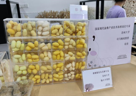 仪式结束后,穆总农艺师和胡董事长等带领大家参观了太湖雪蚕桑文化园,了解桑蚕的生长特点和经济价值。胡董事长为大家普及了蚕的尿液可以治疗冻疮,蚕沙(即蚕的粪便)可以治疗痛风等知识。苏州大学陆小平教授讲解了彩茧的成因,以及养殖桑蚕的关键技术和目前遇到的瓶颈问题,启发同学们善于发现问题、积极探索解决问题。