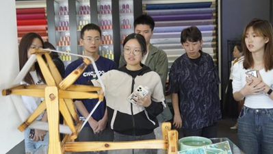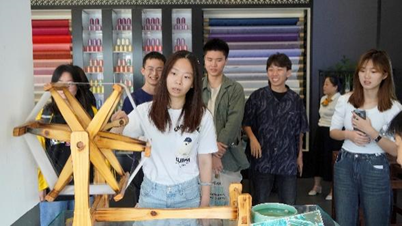 太湖雪蚕桑文化园除了展示养蚕过程外,还有直播带货、游客抽丝体验、蚕茧手工花的制作,以及各种特色工艺品的售卖,将农业、科研、文旅、商业和互联网等元素全方位结合起来,让同学们深刻领悟到现代农业能带动多项产业优质高效发展。在水杉林立、稻花掩映的乡间小道上,大家领略着震泽镇“田中有村、村中有田、水田树村”浑然一体的恬美乡村景致。