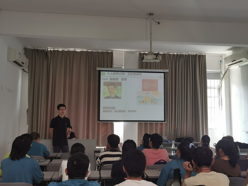 9月19日上午,学院在广州校区南校园开展“食品营养与人类健康”专业导学活动,这是学院本学期面向2023级本科生“家园有约”学业发展系列专题的首期活动。食品营养与人类健康团队王东皓老师、傅业芝老师和汪雷老师,以及2023级全体本科生参加活动。