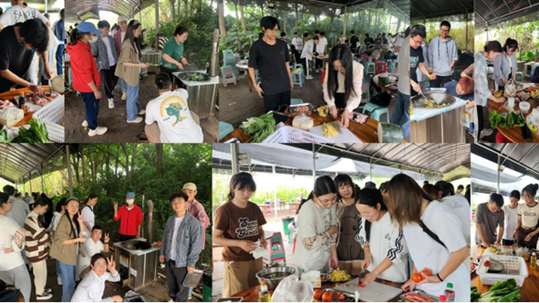 为进一步加强师生交流,同学们开始了野炊活动。同学们分成若干小组,各自分工进行食材的烹饪,野炊活动期间同学们积极与老师交流,以自助做饭的形式培养同学们之间的友谊,加强了师生之间的互动交流。