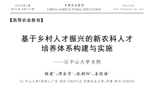 2月1日,学院农业资源利用团队教师魏蜜助理教授,姜晓谦副教授和谭金芳教授,在综合性农业教育期刊《中国农业教育》发表了题为“基于乡村人才振兴的新农科人才培养体系构建与实施 ——以中山大学为例”的教学论文。