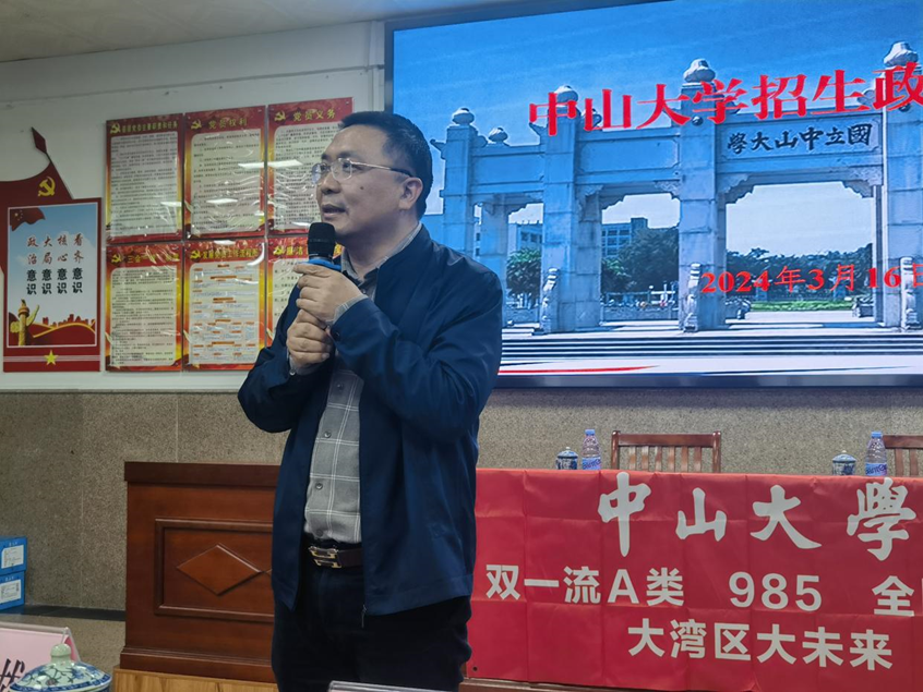 为了帮助中学领导、老师、考生和家长更为全面地了解中山大学的办学情况和招生政策,使高考学子顺利进入理想的大学深造,3月16日,农学院程月华书记与张雨副教授、彭宇涛老师组成招生宣传小组,在梅州市五华县教育局的协助支持下,以“立足高三、深入高二”为原则,赴水寨中学和中英文实验学校开展本年度首批招生宣传咨询活动,取得了良好的宣传交流效果。五华县分管教育的副县长邝逸平,教育局长张伟雄等领导,分别与两所学校的校领导一起,主持、参加了我院的招生宣讲活动。