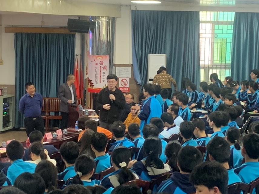 程月华书记首先对水寨中学多年源源不断为中大输送生源,中英文学校2023年异军突起、为中大输送13名考生表示祝贺与感谢;随后,分别做了题为《2024年中山大学招生政策及报考指南》的专题讲座。程书记系统介绍了中山大学的历史沿革、校区布局、学科优势、科研实力、国际交流、校园文化等建设情况,并着重解读了学校以学生成长为中心,实行二次遴选专业、转专业、辅修学位、辅修专业和微专业等灵活多样的培养路径,希望师生们用好用足相关政策,在大学里不负韶华,实现学业能力、综合素质、深造发展等全面提升进步。