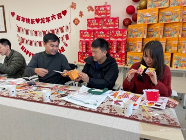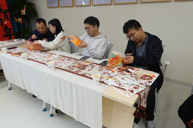 纸灯翩跹照未来,金龙翻腾创新年。为了烘托龙年祥瑞的气氛,联欢会安排了制作纸扎龙灯笼环节。教职工们巧手制作出一盏盏形态各异、灵动闪烁的精美龙灯,不仅蕴含了大家对传统年俗文化的尊重和传承,还体现了学院关爱互助、蓬勃发展的美好期盼。