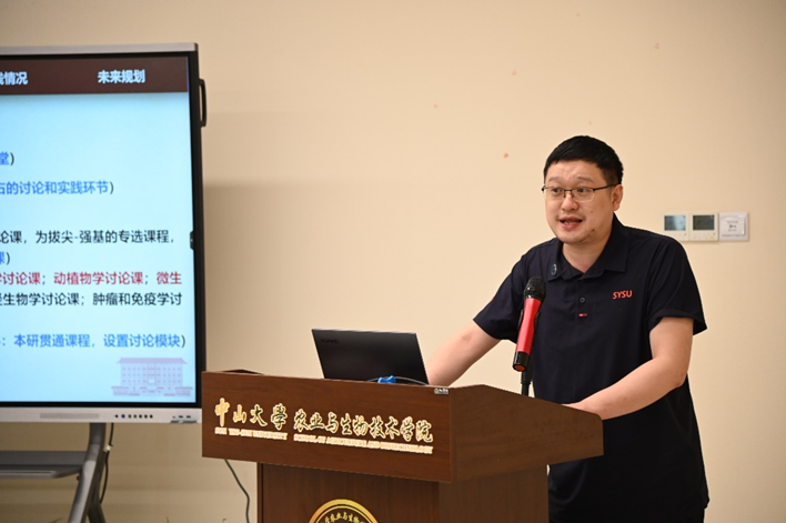 教务部陈省平主任以《以学生成长为中心 提高人才自主培养质量》为题作专题报告,从激发主动学习、推动卓越教学和规范教学管理等方面,介绍了学校人才培养工作的重点和教学改革举措。同时,以本科教育教学审核评估为新的起点,解读了学校持续深化本科教育教学改革,全面提升人才自主培养质量的36条指导意见,以及以“一个中心、两个结合、三力提升、四个方面、三个最大限度、两个转变”为特征的本科人才培养“逸仙模式2.0”,让学科教育回归到“育人”的本真。陈主任结合农生学院近年来的教学发展情况,鼓励优秀教师团队凝练教学成果,积极申报一流教材和一流课程,培养一批新农科特色的教学名师。