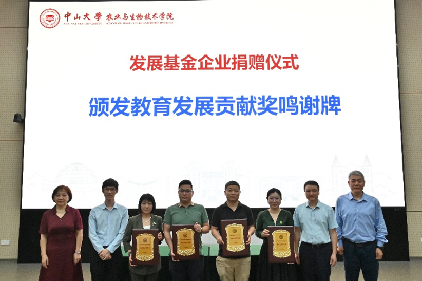 深圳市丰农控股集团创始人闫子铜董事长和多名部门CEO均为我校信科、管理、化工等学院校友。他们在结伴深耕新农科领域并取得事业成功的同时,心系母校,从2022年起在我院设立“丰农奖学金”,用来表彰学业优异、勇于创新的集体或个人,已奖助我院学生60余人次。在百年校庆即将到来之际,丰农公司再向我院捐赠30万元。同时,广东瑞丰生态环境科技股份有限公司、深圳市中佳生物医疗科技有限公司、碳原科技(云浮)有限公司分别向我院捐赠20万元,四家企业共同为我院事业发展基金奠定基础。