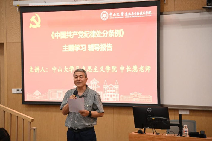 为了帮助师生党员加深对《条例》的精准掌握与深刻理解,学院马克思主义学院申长慧老师作了《为新征程推进全面从严治党提供坚强纪律保障——<中国共产党纪律处分条例>解读》的辅导报告。