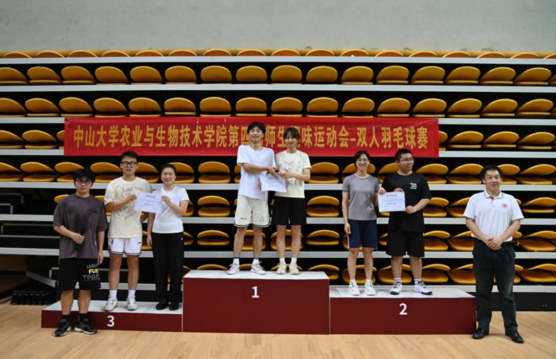 6月2日上午,趣味运动会迎来了第二周的比赛,也是本届运动会的收官战——双人羽毛球赛。羽毛球赛吸引了师生自由组队的11支队伍,涵盖男子双人组、女子双人组以及混合双人组三个组别。比赛采取两两车轮战的形式,以累计获胜场数进行排名。