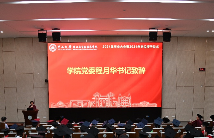 程月华书记对2024届73名毕业生致以热烈的祝贺和真挚的祝福,感谢同学们无论是学院在广州东校园初创复办的起步阶段,还是在进驻深圳校区逐步完善的发展时期,始终与党和国家的期待同心同德,与学校和学院的总体布局同向同行。同学们所做出的贡献和取得的成就,将镌刻在学院师生的美好回忆中,成为学院发展的动力和学生成长的路标。程书记祝愿全体毕业生:“经过毕业的洗礼,能够更加成熟理性、奋发进取,做一粒好种子,扎根祖国沃土;在新的学习和工作中,逐梦山海立大志,追求卓越立新功,成为练就过硬本领、勇担时代重任的社会主义建设者和接班人”。