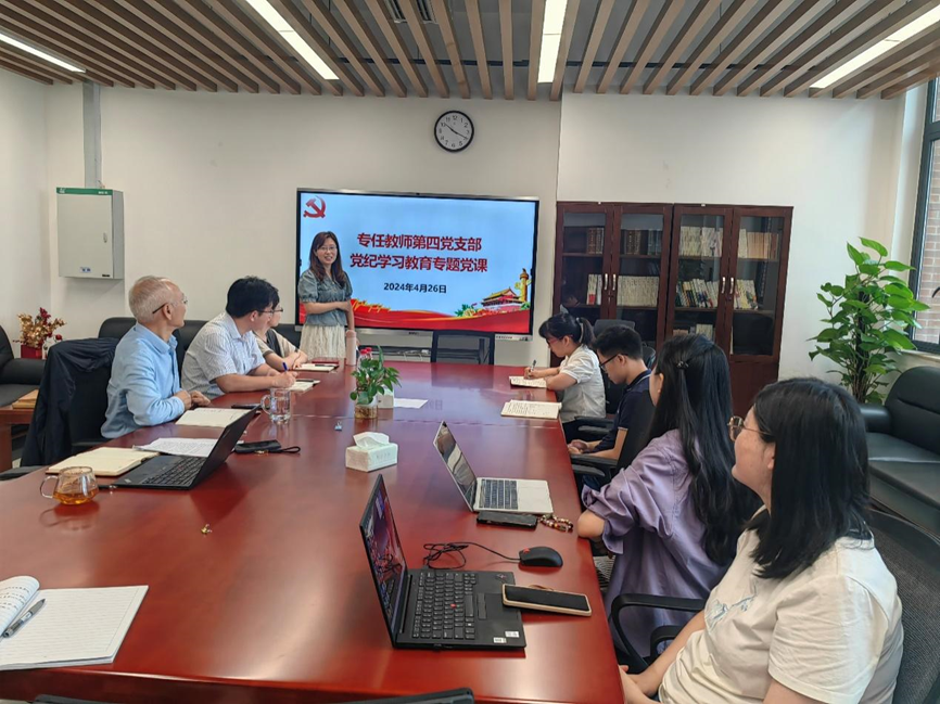 4月26日,党支部书记姜晓谦副教授讲授了题为《师表垂范,纪法铸魂》的纪律党课。姜老师提醒各位教师党员要从学术诚信、科研项目管理和教学管理三个方面,树立纪律意识,明确底线,以党纪党规为准绳,以实际行动展示学术诚信、道德高尚的师表风范。