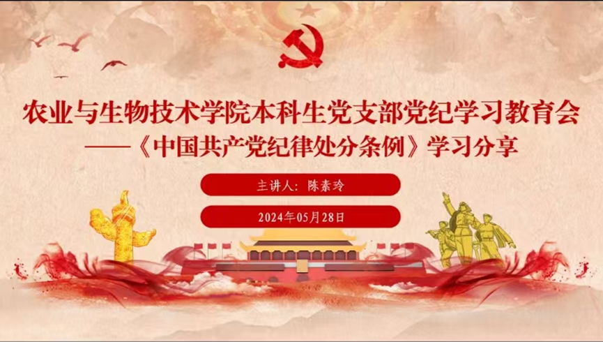 【党纪学习教育】农生学院党支部全覆盖举行党纪学习教育纪律党课