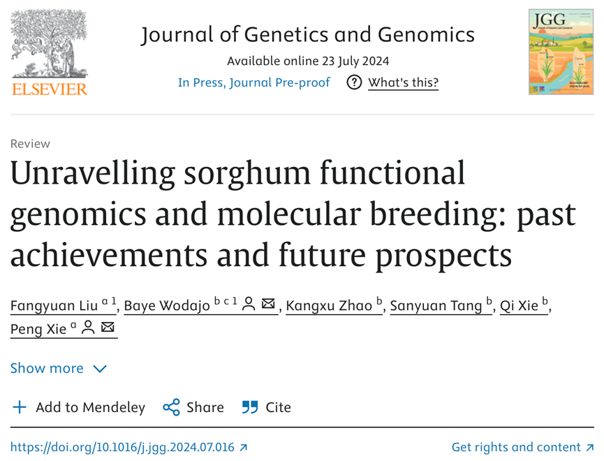 7月24日,我院谢鹏副教授课题组与中国科学院遗传与发育生物学所谢旗团队合作,应邀在Journal of Genetics and Genomics(中科院大类1区, IF=6.6)上发表题为“Unravelling sorghum functional genomics and molecular breeding: past achievements and future prospects”的综述论文。该文系统阐述了通过基因编辑和聚合优异等位基因来推进的高粱分子设计育种,旨在加速理想高粱品种的开发和培育进程。