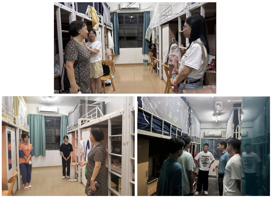 8月28日晚上,学院党委程月华书记、胡罡副书记及团委书记陈素玲老师,与迎新志愿者们分组走访了本科新生宿舍。老师们和志愿者们向各位新生表示热烈欢迎,关心同学们对新环境的适应情况,耐心解惑,暖心提醒同学们做好军训准备,注意防暑;相互帮助,共同进步