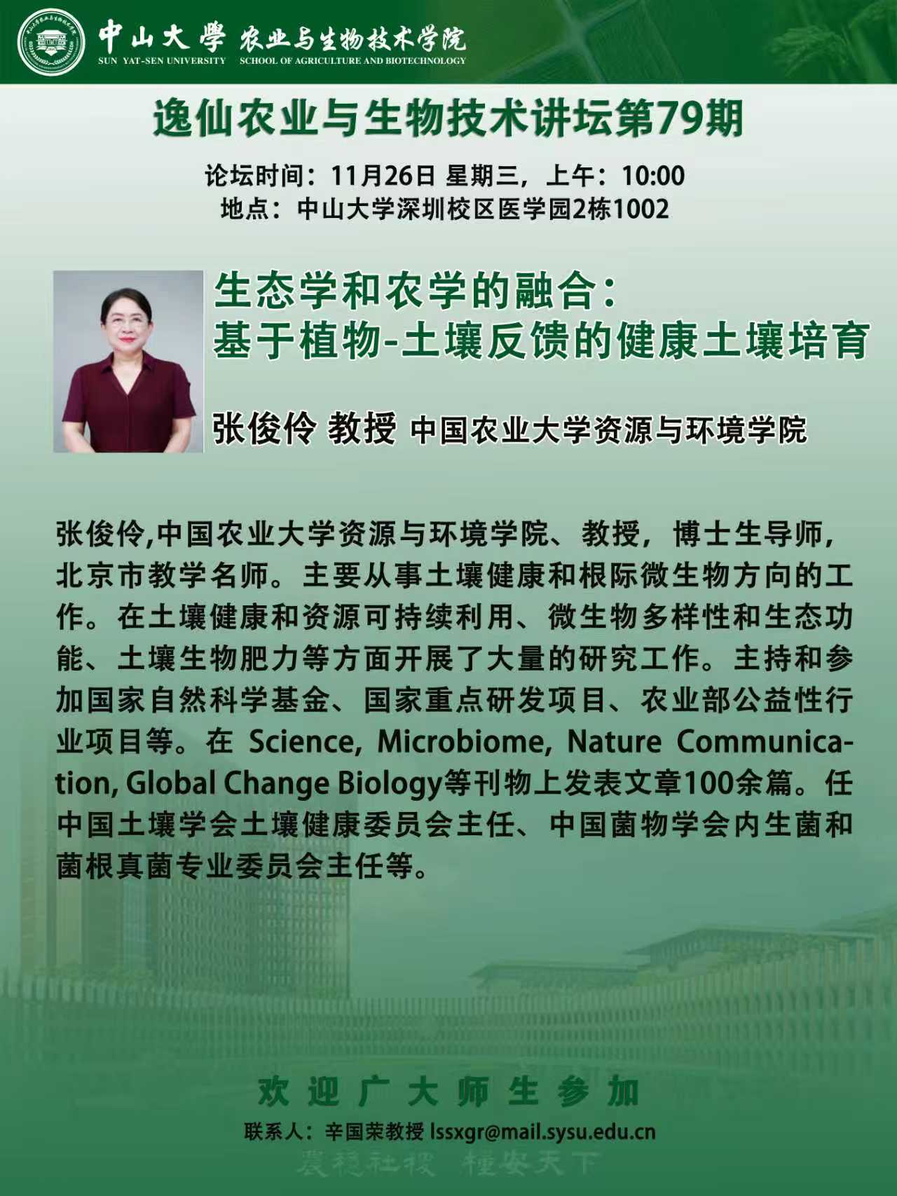 导航痕迹 yl1111永利集团 逸仙讲坛第79期 | 生态学和农学的融合:基于植物-土壤反馈的健康土壤培育 扫描此二维码分享 逸仙讲坛第79期 | 生态学和农学的融合:基于植物-土壤反馈的健康土壤培育 发布人:万子龙 发布日期:2025-11-24 活动时间 2025年11月26日 10:00 - 2025年11月26日 12:00