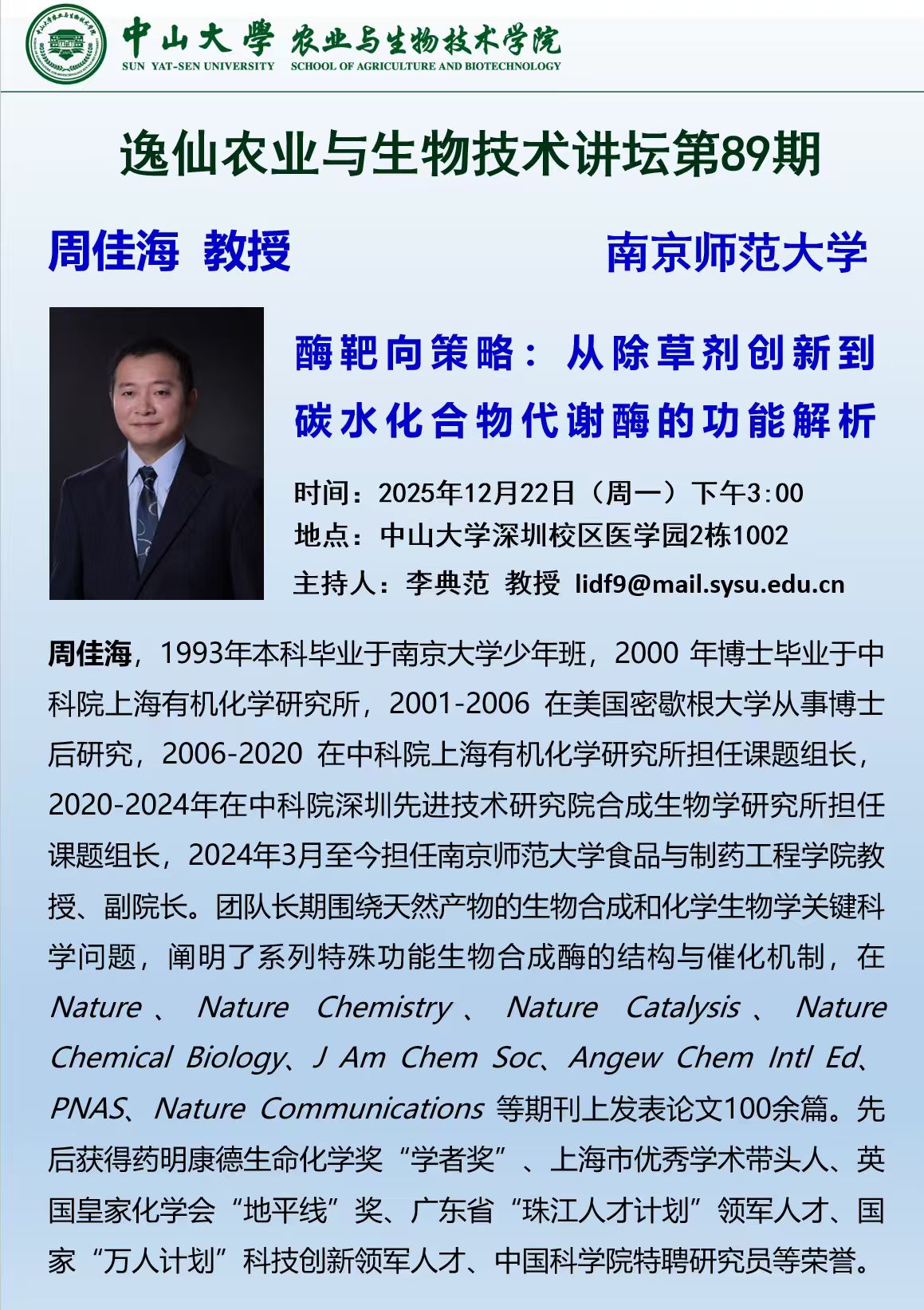 导航痕迹 yl1111永利集团 逸仙讲坛第89期 | 酶靶向策略:从除草剂创新到碳水化合物代谢酶的功能解析 扫描此二维码分享 逸仙讲坛第89期 | 酶靶向策略:从除草剂创新到碳水化合物代谢酶的功能解析 发布人:万子龙 发布日期:2025-12-22 活动时间 2025年12月22日 15:00 - 2025年12月22日 17:00